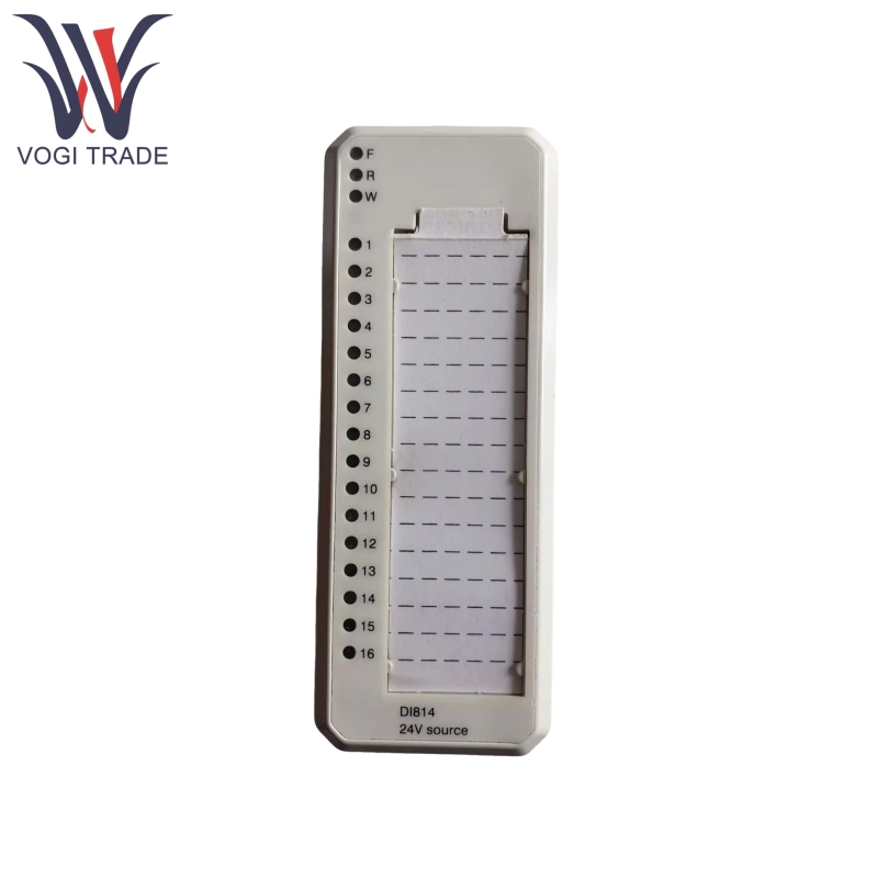 ABB DI814 được trang bị các chỉ số LED mặt trước, bao gồm lỗi (F), RUN (R), cảnh báo (W) và 16 chỉ số trạng thái kênh (Hồi 0, hoặc 1 1), tạo điều kiện cho chẩn đoán nhanh.