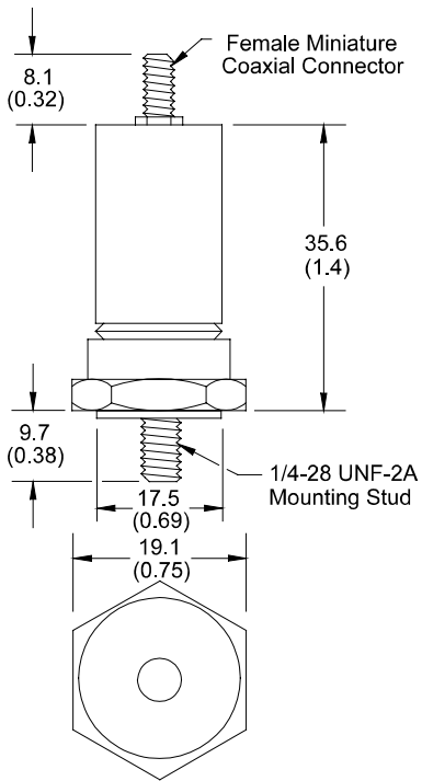 Bản vẽ này cung cấp kích thước chi tiết (tính bằng milimet/inch) của gia tốc kế 23732-01, bao gồm các luồng và chiều cao lắp, và là một tham chiếu chính để cài đặt.