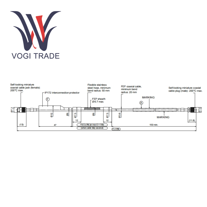 Đặc điểm cáp: Cáp đồng trục 70, được bao phủ bởi vật liệu FEP (fluorinated ethylene propylene), cung cấp khả năng kháng hóa chất tuyệt vời, độ thẩm thấu thấp và độ bền cơ học.