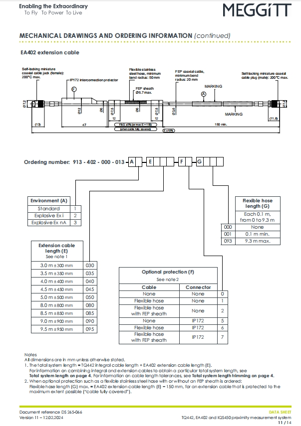 Nhiệt độ vận hành: -40 ° C đến +200 ° C (cáp, đầu nối và các thành phần bảo vệ).