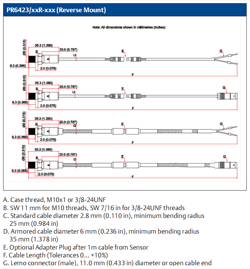 Chỉ áp dụng cho vật liệu dẫn điện. PR6423/003-030 không thể được sử dụng để đo trục phi kim loại.