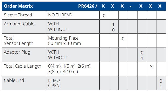 PR6426/010-110 là cảm biến dòng điện xoáy có đường kính đầu dò là 32mm. Kích thước đầu dò khổng lồ cho phép nó tạo ra trường cảm ứng sâu hơn và rộng hơn, do đó cho phép đo mục tiêu ở khoảng cách xa hơn và không nhạy cảm với những điểm không đồng đều nhỏ trên bề mặt được đo.