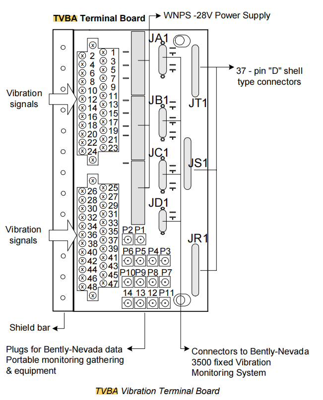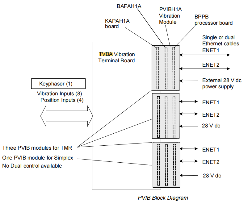 Nguồn điện kích thích Đối với gia tốc kế ICP/IEPE, bảng đầu cuối hoặc mô-đun VVIB đi kèm sẽ cung cấp nguồn kích thích dòng không đổi +24V DC, 2-10mA. Đối với các cảm biến dòng điện xoáy, sự kích thích thường được cung cấp bởi bộ tiền khuếch đại (Proximitor) và bo mạch TVBA chỉ nhận tín hiệu đầu ra của nó.