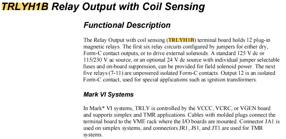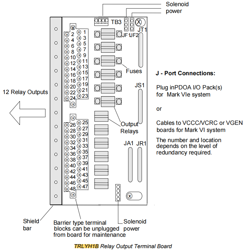 IS200TRLYH1B, bảng đầu cuối đầu ra rơle tiêu chuẩn cho Mark VIe.