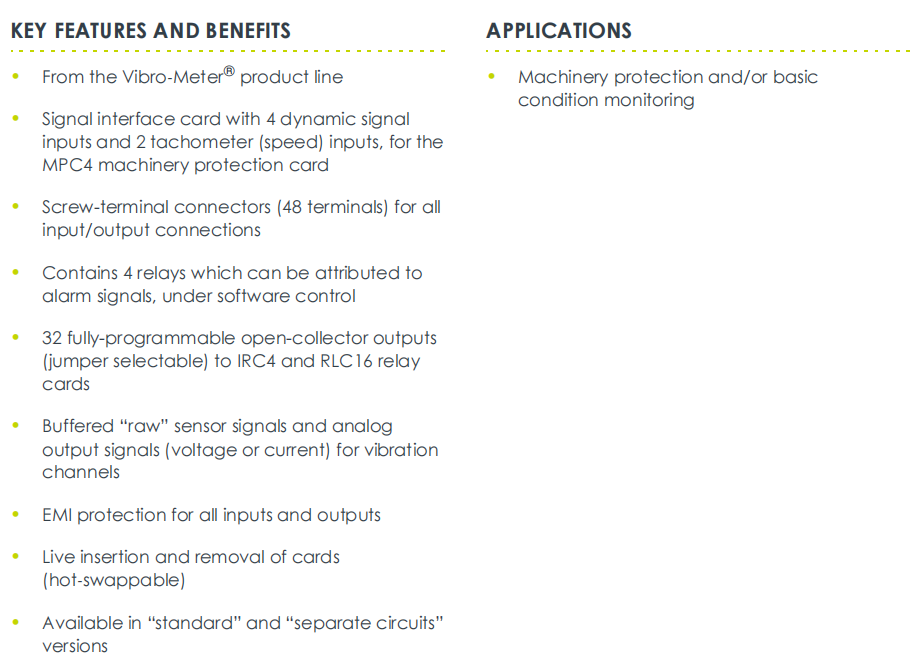 Việc truy cập tín hiệu cảm biến, thông qua J1 và J2, có thể kết nối tối đa 4 cảm biến dòng điện xoáy và 2 cảm biến tốc độ quay, tạo cơ sở cho việc giám sát toàn diện một máy quay lớn.