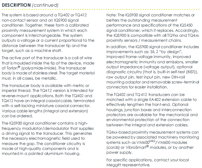 Các cảm biến ban đầu chỉ tập trung vào hiệu suất của đầu dò. Ngày nay, giá trị của TQ412 đã mở rộng ra toàn bộ chuỗi “nhận thức – truyền tải – xử lý”. Sự xuất hiện của các tùy chọn như F0, F1 và F2 cho thấy các nhà sản xuất coi cáp là một phần không thể thiếu của hệ thống. Tư duy cấp hệ thống này đảm bảo tính toàn vẹn tín hiệu từ đầu dò đến đầu vào trong phòng điều khiển và đảm bảo khả năng thay thế "cắm và chạy" thông qua hiệu chuẩn tại nhà máy, chuyển đổi hoàn toàn chế độ bảo trì tại chỗ.